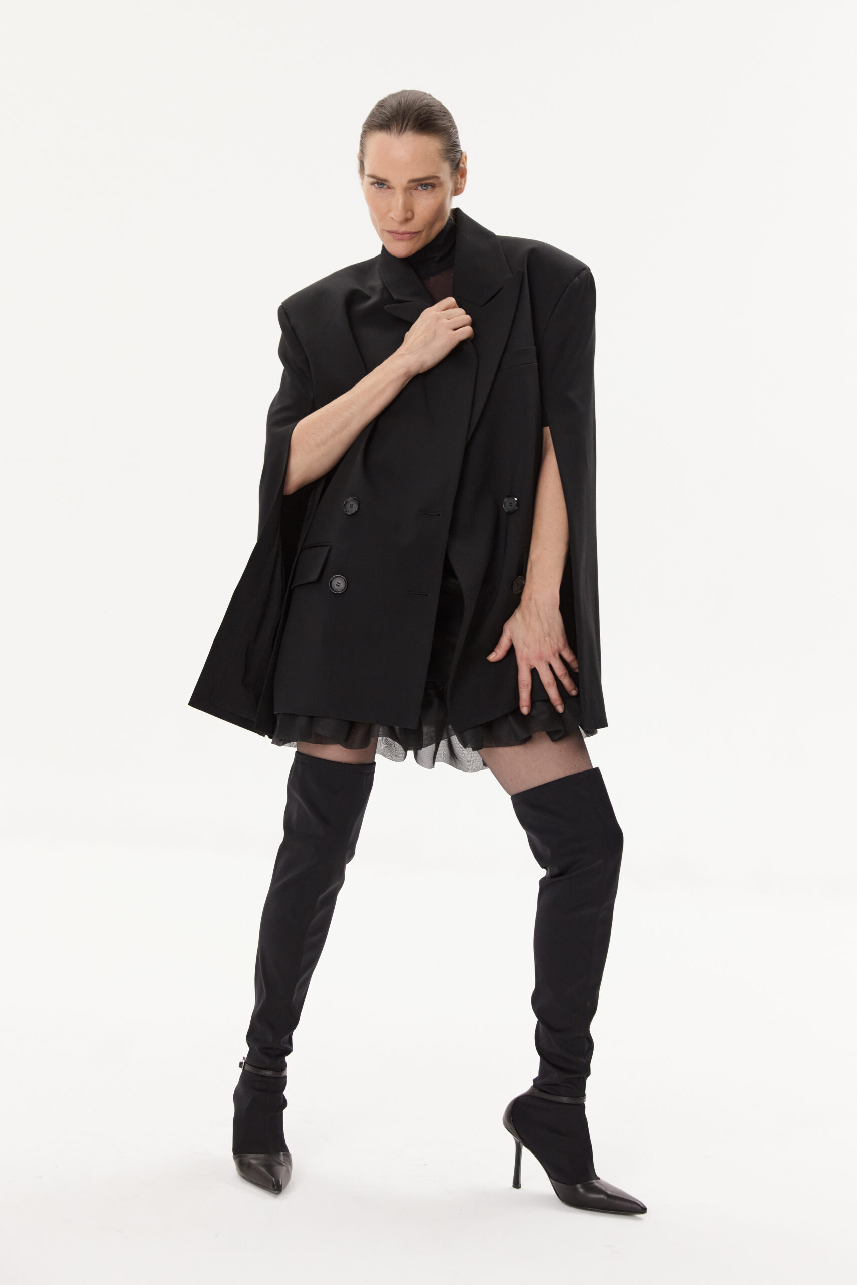 Jacekt with split sleeves made of wool.Double-row fastening. Features two slit pockets.