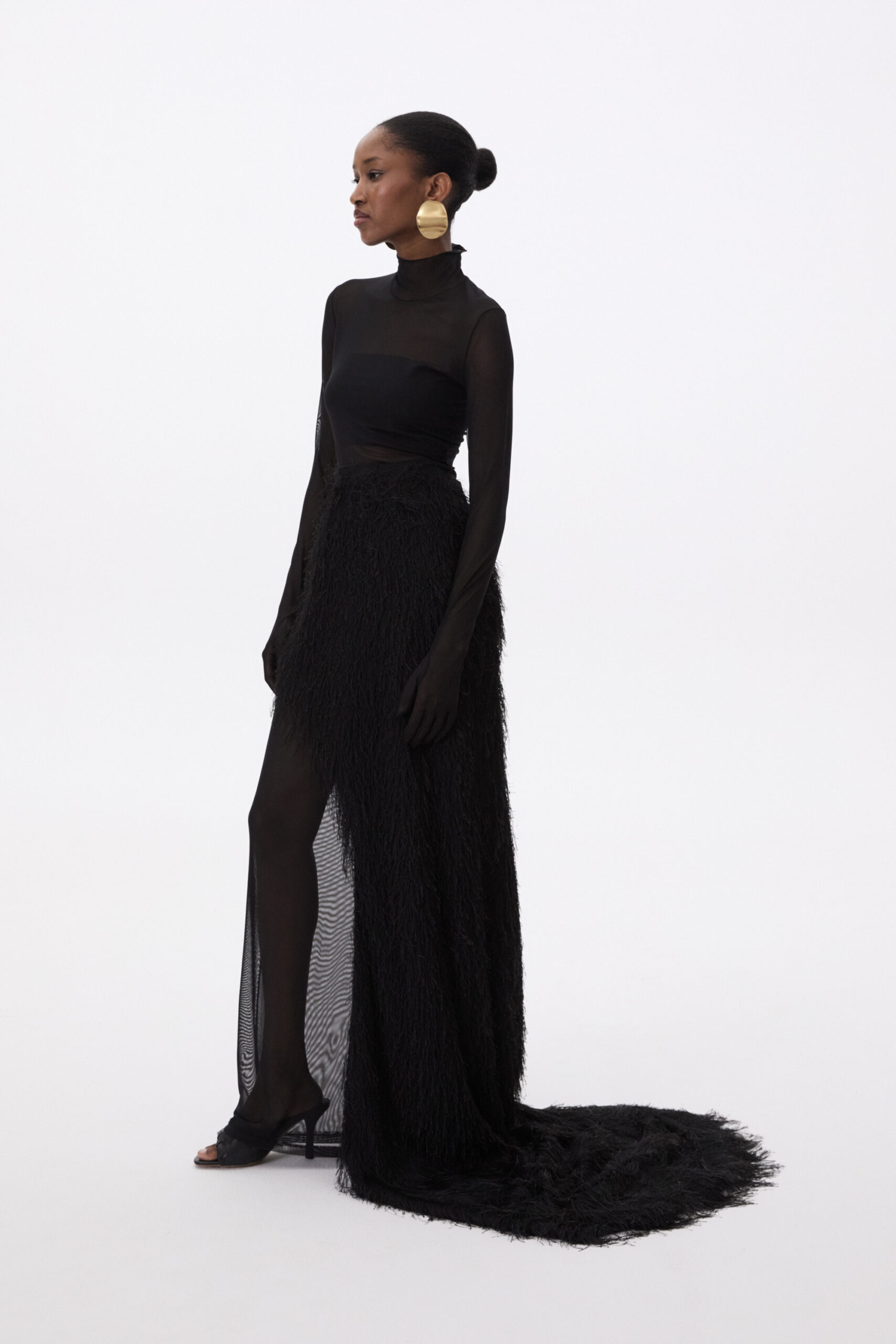 sheer long dress with gloves